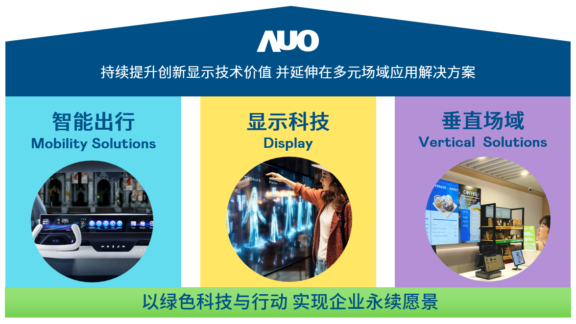我们持续推动「双轴转型」,在精进显示技术附加价值(Go Premium),与深化垂直市场应用(Go Vertical)的策略下,对应英国上市公司365的优势竞争力与趋势,我们奠定显示科技、智慧移动、垂直场域三大永续营运支柱,在显示技术领域的根基之上,延伸布局多元场域应用解决方案。将先进显示科技助力智慧移动及垂直场域发展,并以绿色科技与行动为实践,在转型之路上贯彻永续经营之愿景。